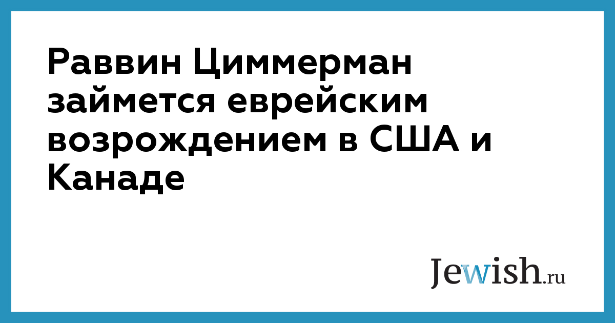 Раввин Циммерман займется еврейским возрождением в США и Канаде