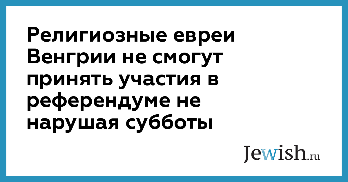 Религиозные евреи Венгрии не смогут принять участия в референдуме не нарушая субботы
