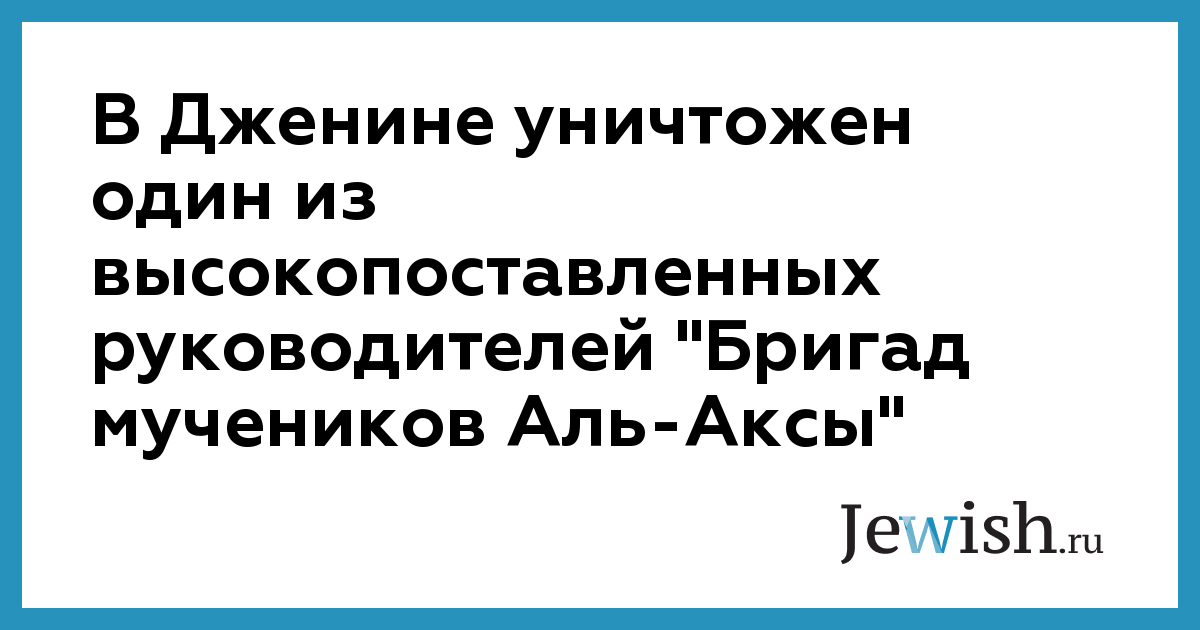 В Дженине уничтожен один из высокопоставленных руководителей "Бригад мучеников Аль-Аксы"