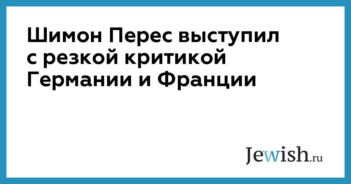 Шимон Перес выступил с резкой критикой Германии и Франции