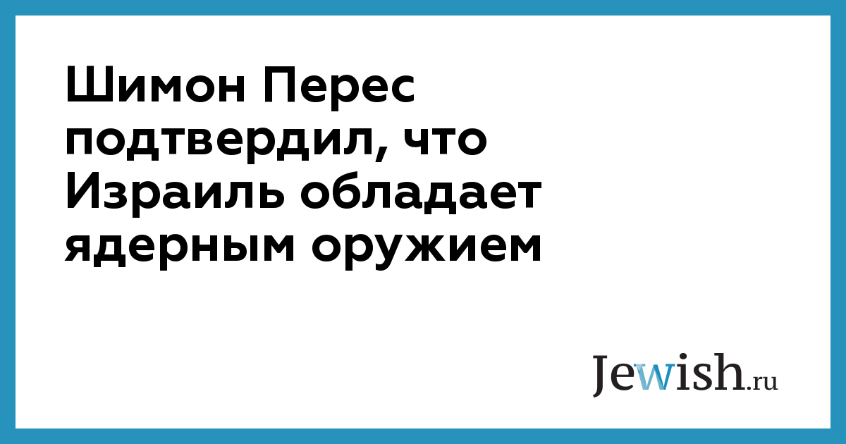 Шимон Перес подтвердил, что Израиль обладает ядерным оружием
