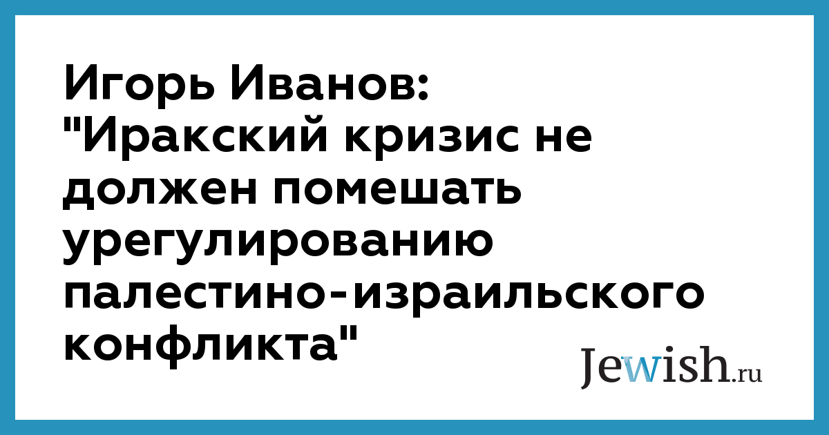 Игорь Иванов: "Иракский кризис не должен помешать урегулированию палестино-израильского конфликта"