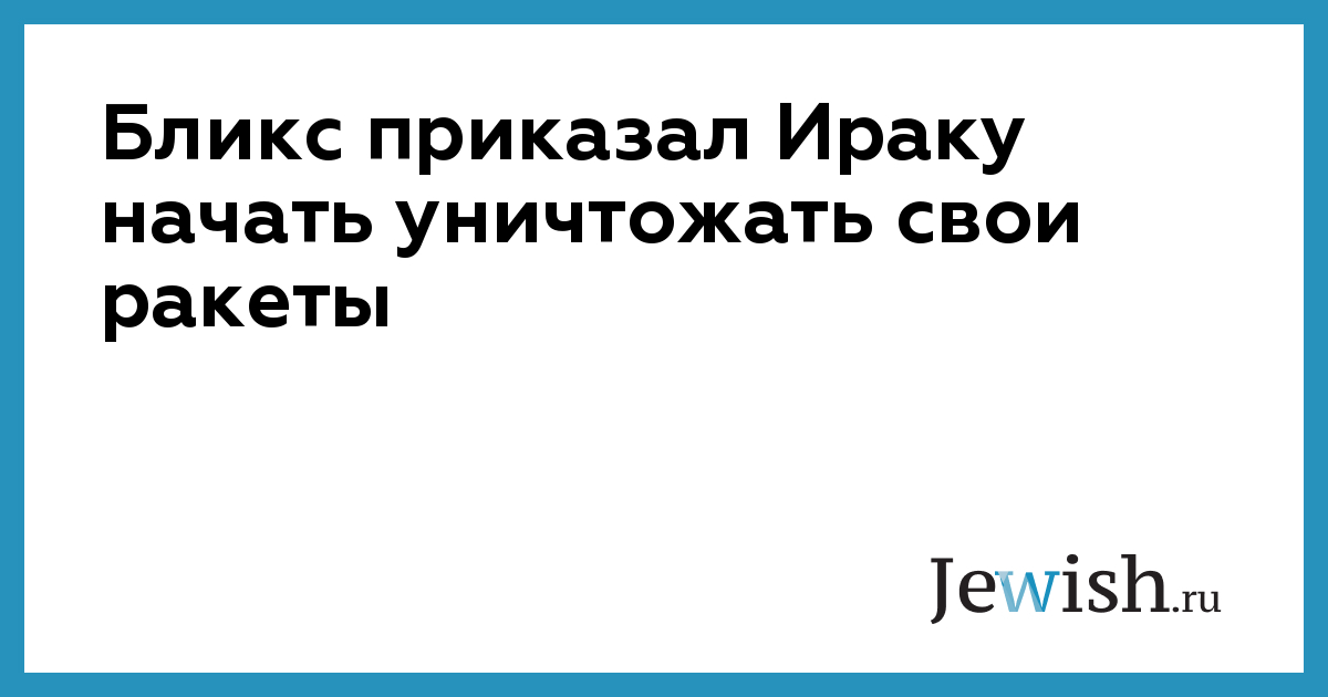 Бликс приказал Ираку начать уничтожать свои ракеты