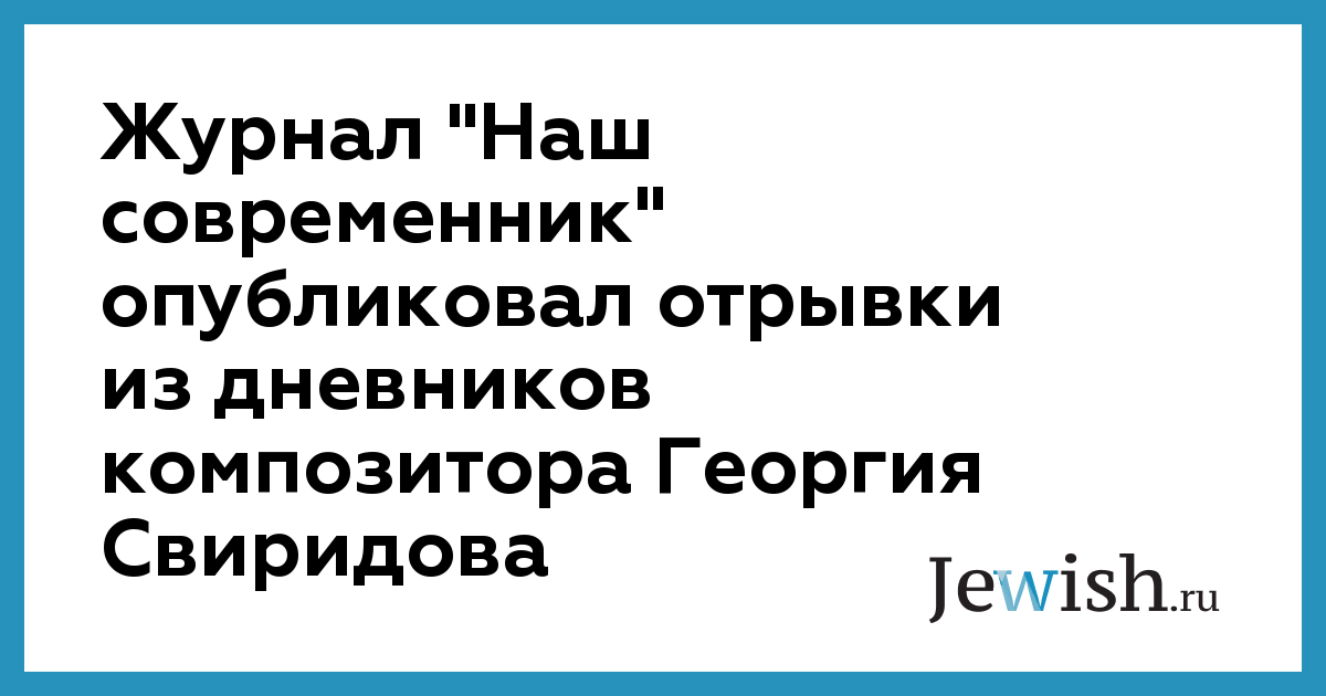 Журнал "Наш современник" опубликовал отрывки из дневников композитора Георгия Свиридова