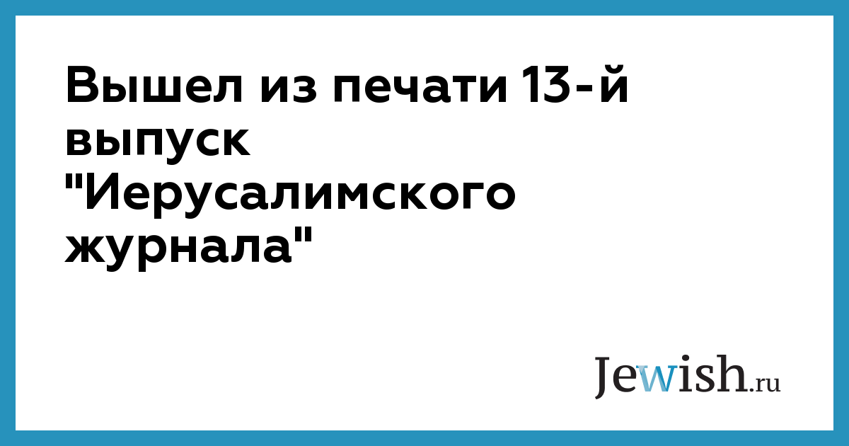 Вышел из печати 13-й выпуск "Иерусалимского журнала"