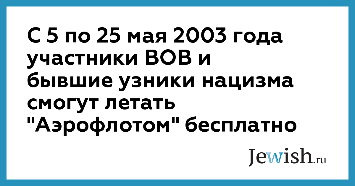 С 5 по 25 мая 2003 года участники ВОВ и бывшие узники нацизма смогут летать "Аэрофлотом" бесплатно