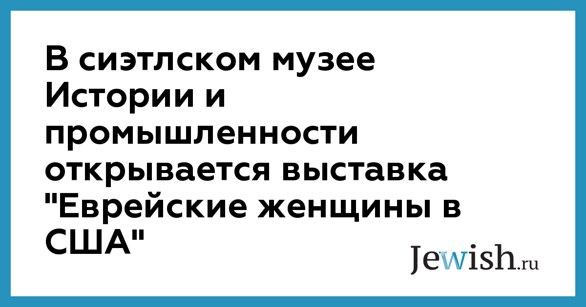 В сиэтлском музее Истории и промышленности открывается выставка "Еврейские женщины в США"