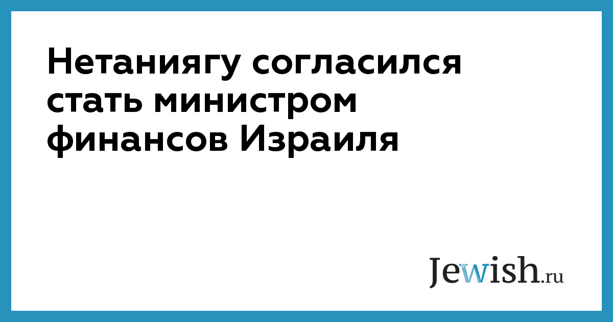 Нетаниягу согласился стать министром финансов Израиля