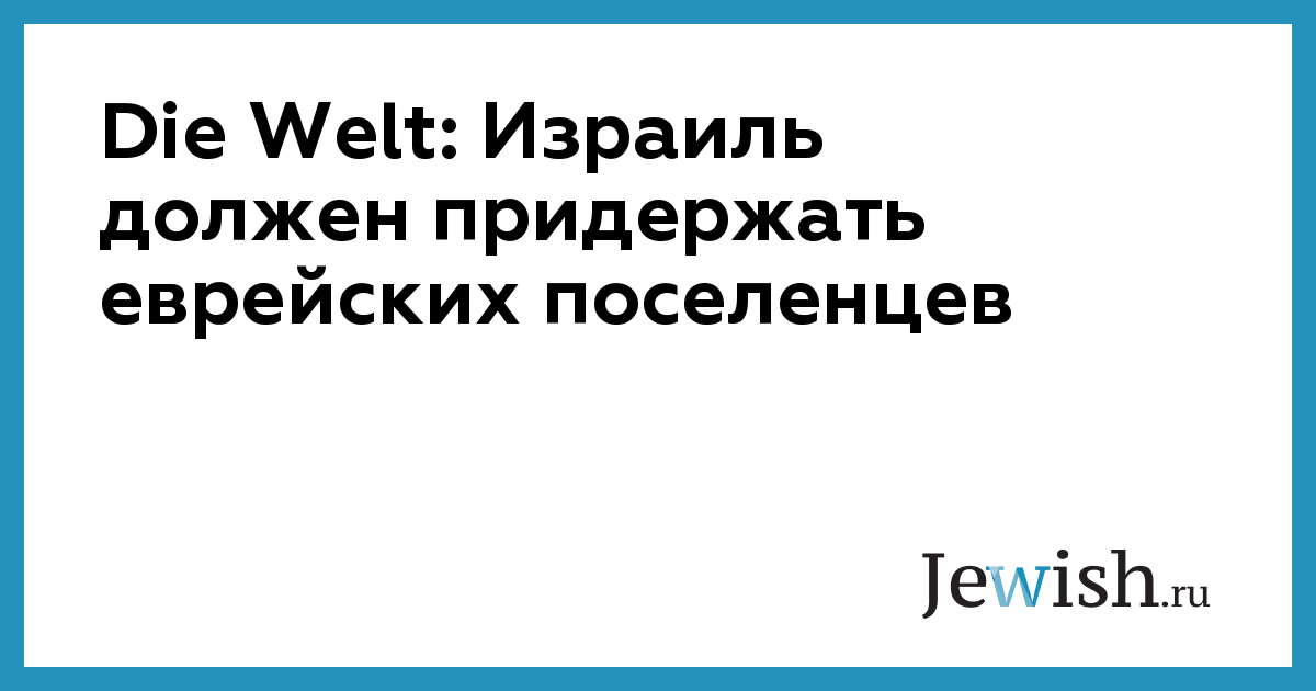 Die Welt: Израиль должен придержать еврейских поселенцев