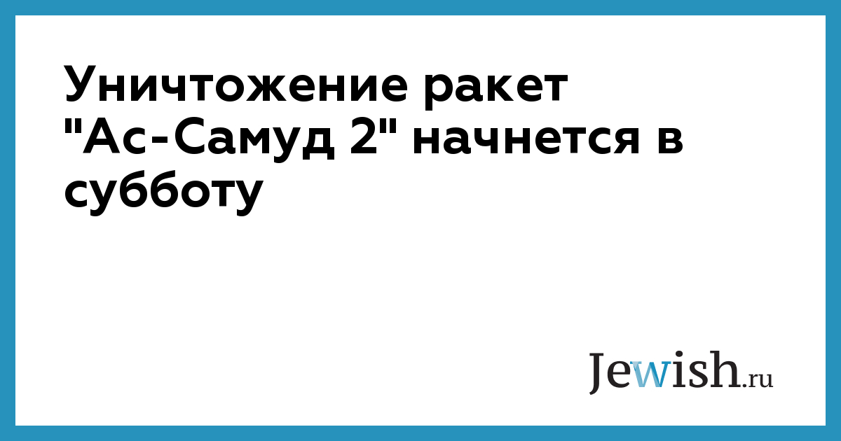 Уничтожение ракет "Ас-Самуд 2" начнется в субботу