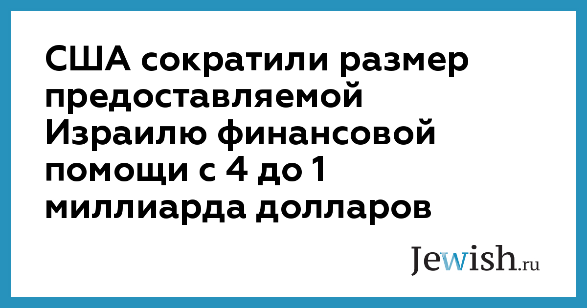 США сократили размер предоставляемой Израилю финансовой помощи с 4 до 1 миллиарда долларов