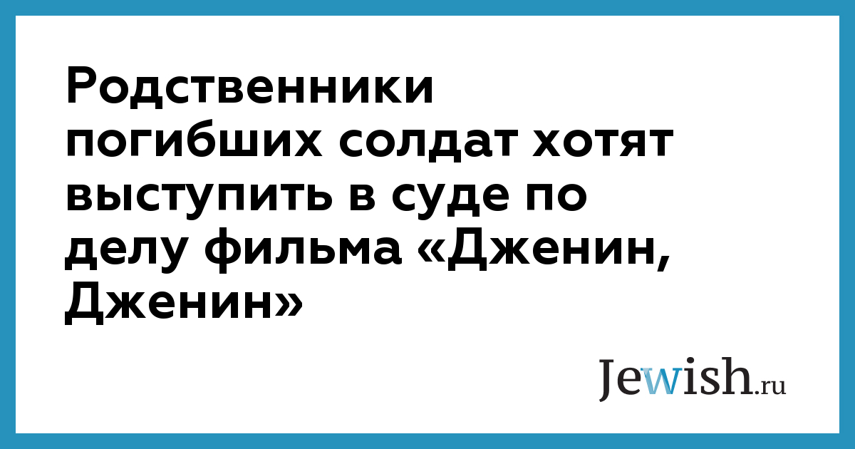 Родственники погибших солдат хотят выступить в суде по делу фильма «Дженин, Дженин»