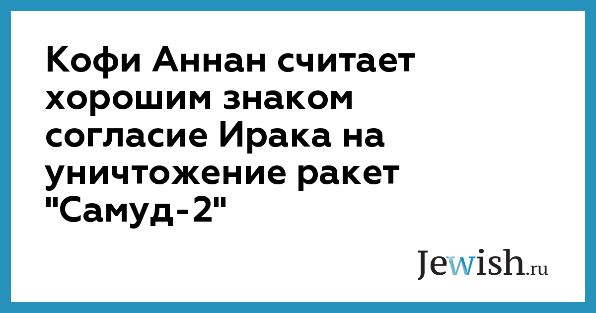 Кофи Аннан считает хорошим знаком согласие Ирака на уничтожение ракет "Самуд-2"