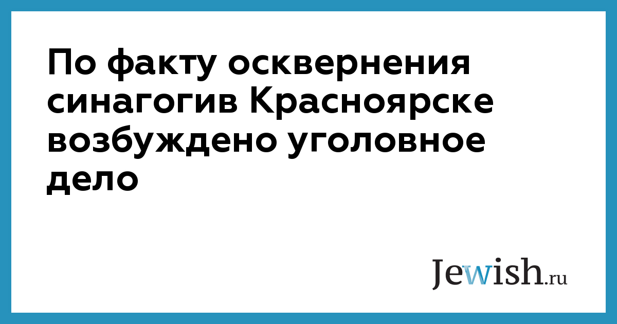 По факту осквернения синагогив Красноярске возбуждено уголовное дело