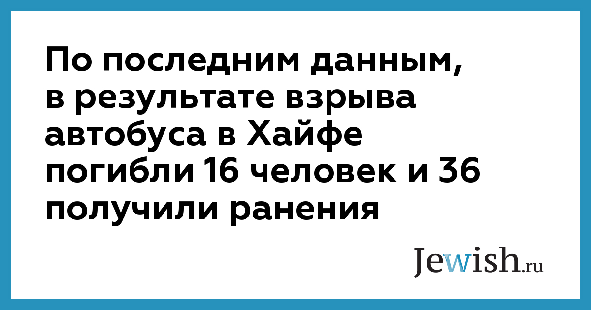 По последним данным, в результате взрыва автобуса в Хайфе погибли 16 человек и 36 получили ранения