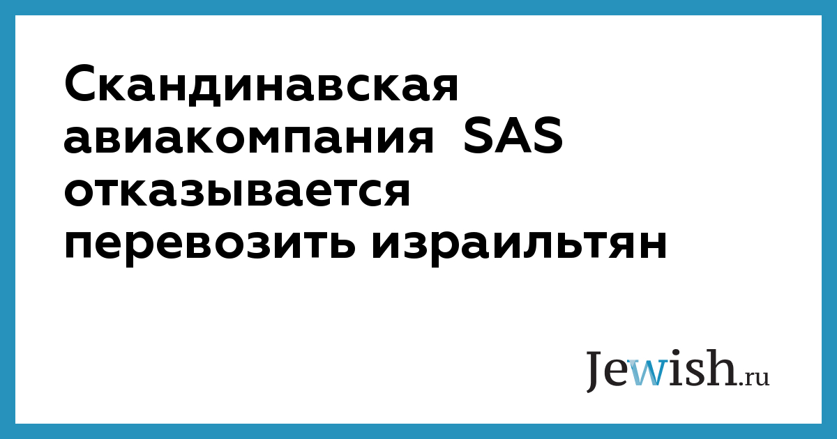 Скандинавская авиакомпания SAS отказывается перевозить израильтян