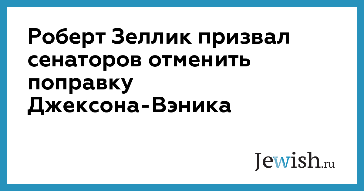 Роберт Зеллик призвал сенаторов отменить поправку Джексона-Вэника