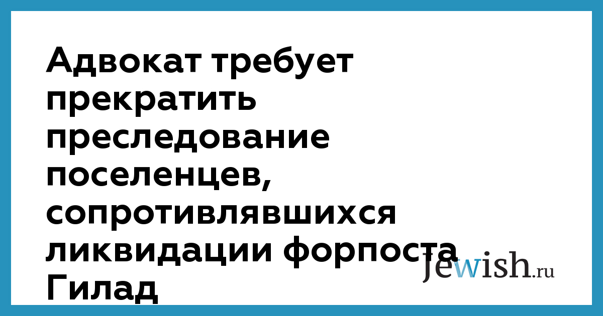 Адвокат требует прекратить преследование поселенцев, сопротивлявшихся ликвидации форпоста Гилад