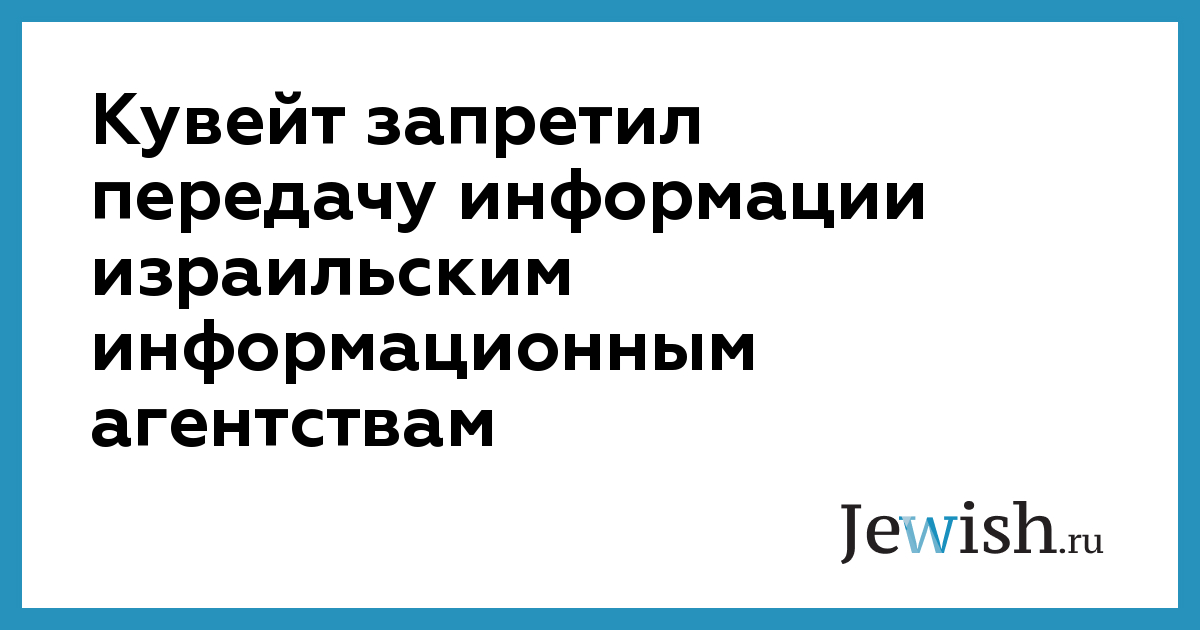 Новое постановление министерства информации Кувейта гласит, –"Пожалуйста, имейте в виду, что закон государства Кувейт запрещает любой вид сотрудничества и взаимодействия с Израилем. Министерство информации уведомляет о запрете передачи репортажей израильским агентствам информации".