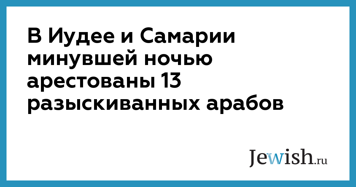 В Иудее и Самарии минувшей ночью арестованы 13 разыскиванных арабов
