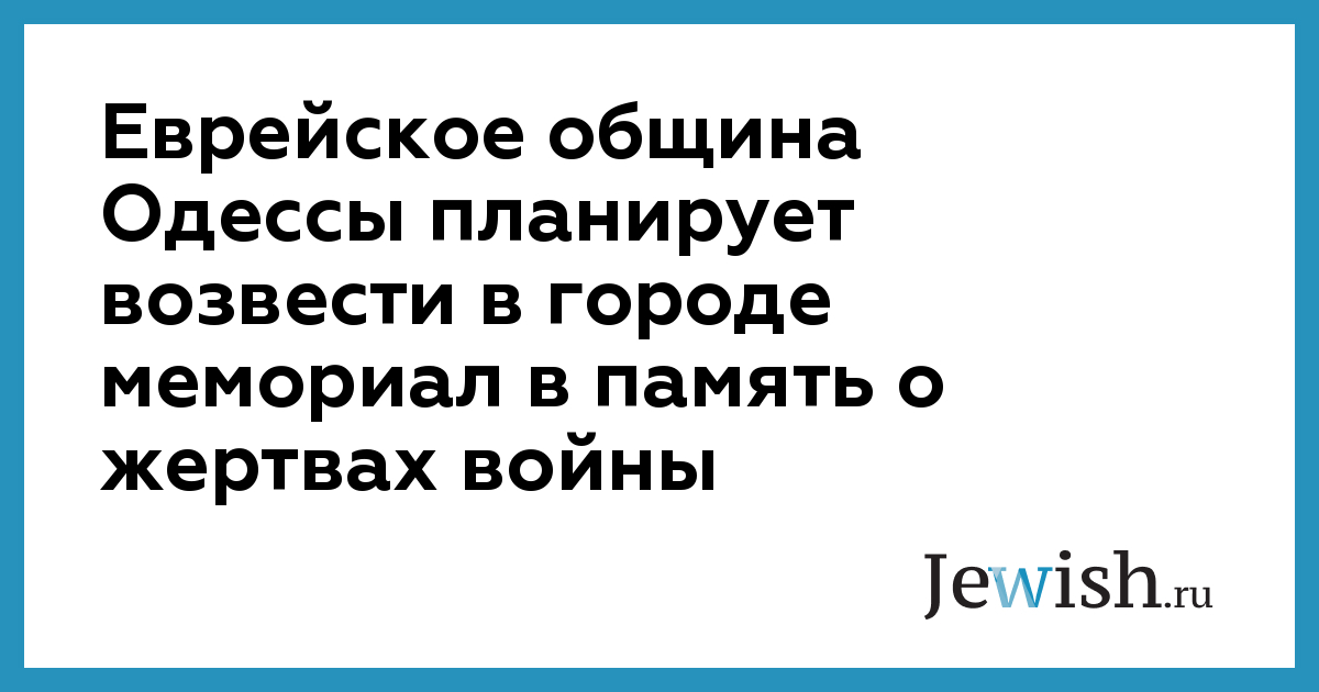 Еврейское община Одессы планирует возвести в городе мемориал в память о жертвах войны