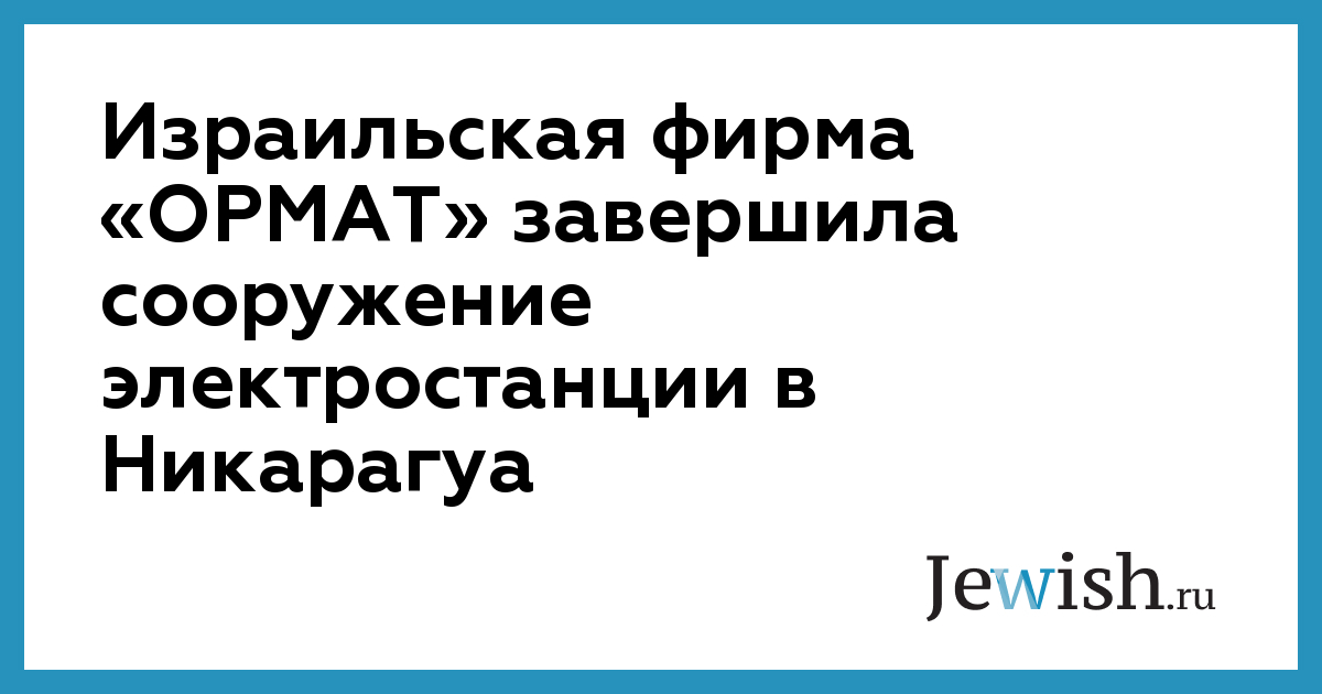Израильская фирма «ОРМАТ» завершила сооружение электростанции в Никарагуа