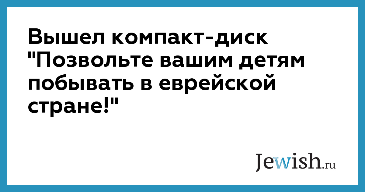 Вышел компакт-диск "Позвольте вашим детям побывать в еврейской стране!"