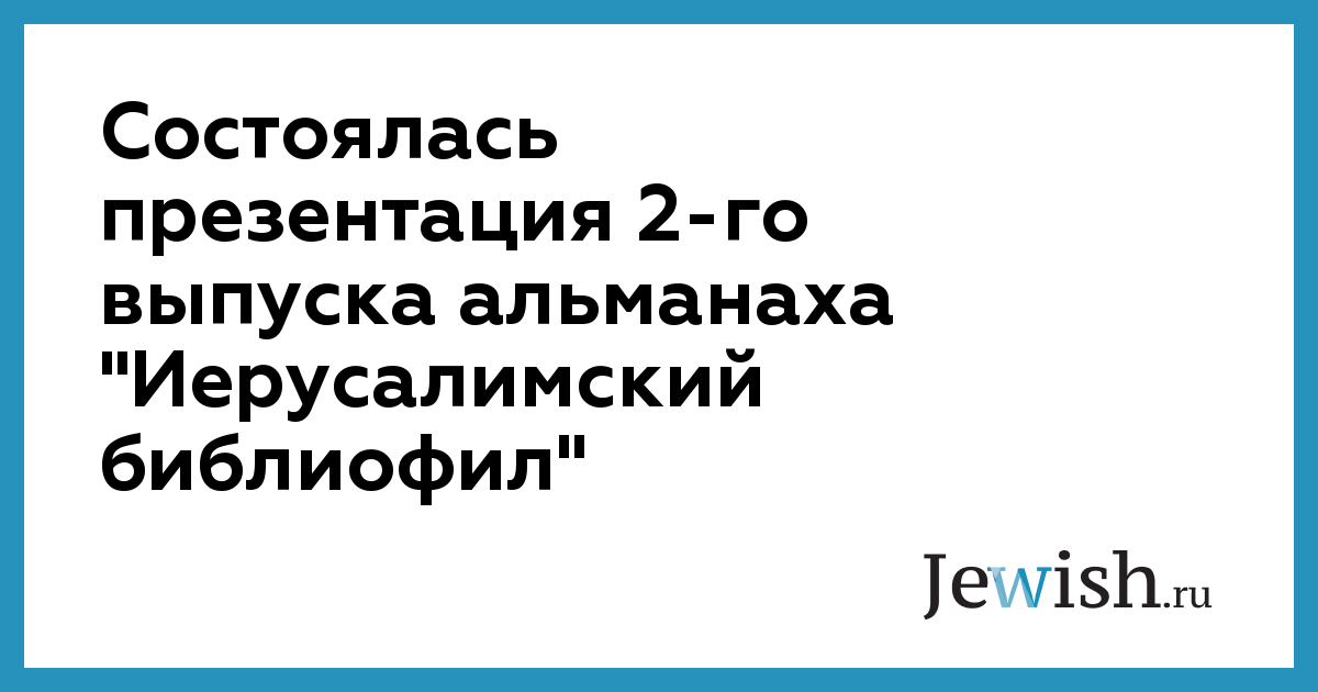 Состоялась презентация 2-го выпуска альманаха "Иерусалимский библиофил"