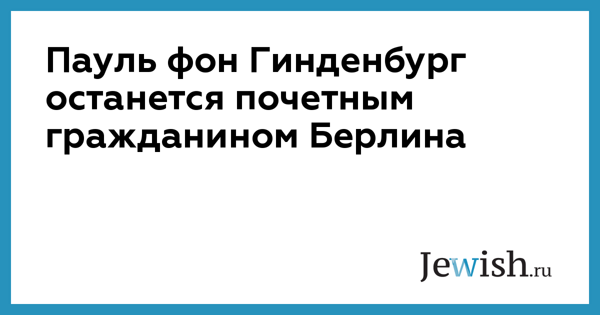 Пауль фон Гинденбург останется почетным гражданином Берлина