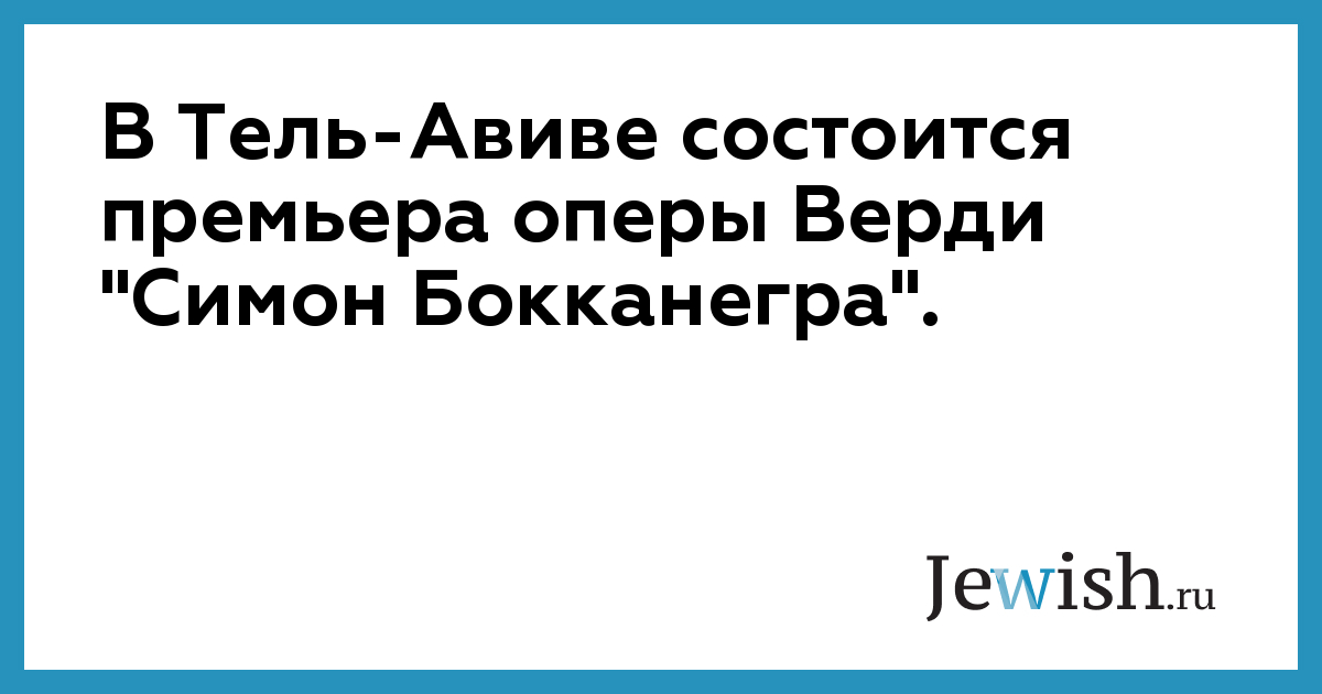 В Тель-Авиве состоится премьера оперы Верди "Симон Бокканегра".