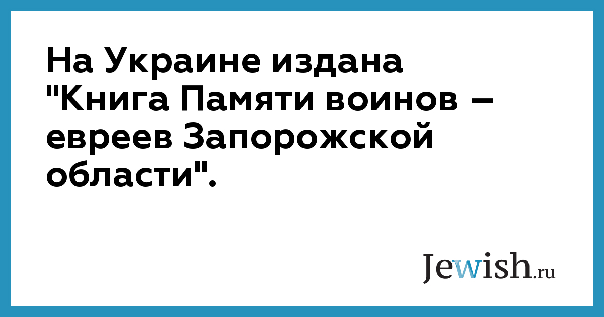 На Украине издана "Книга Памяти воинов – евреев Запорожской области".