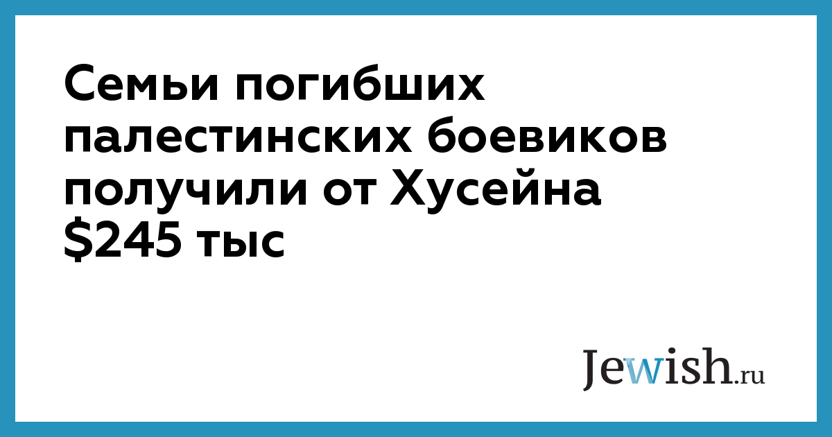 Семьи погибших палестинских боевиков получили от Хусейна $245 тыс