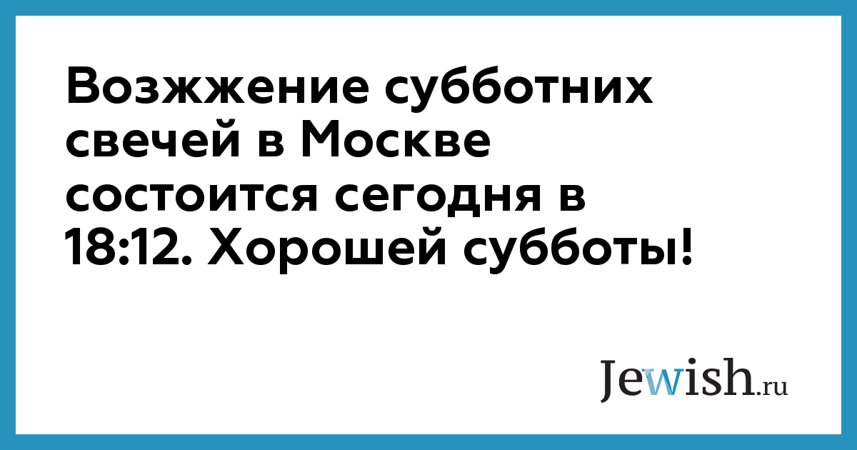 Возжжение субботних свечей в Москве состоится сегодня в 18:12. Хорошей субботы!