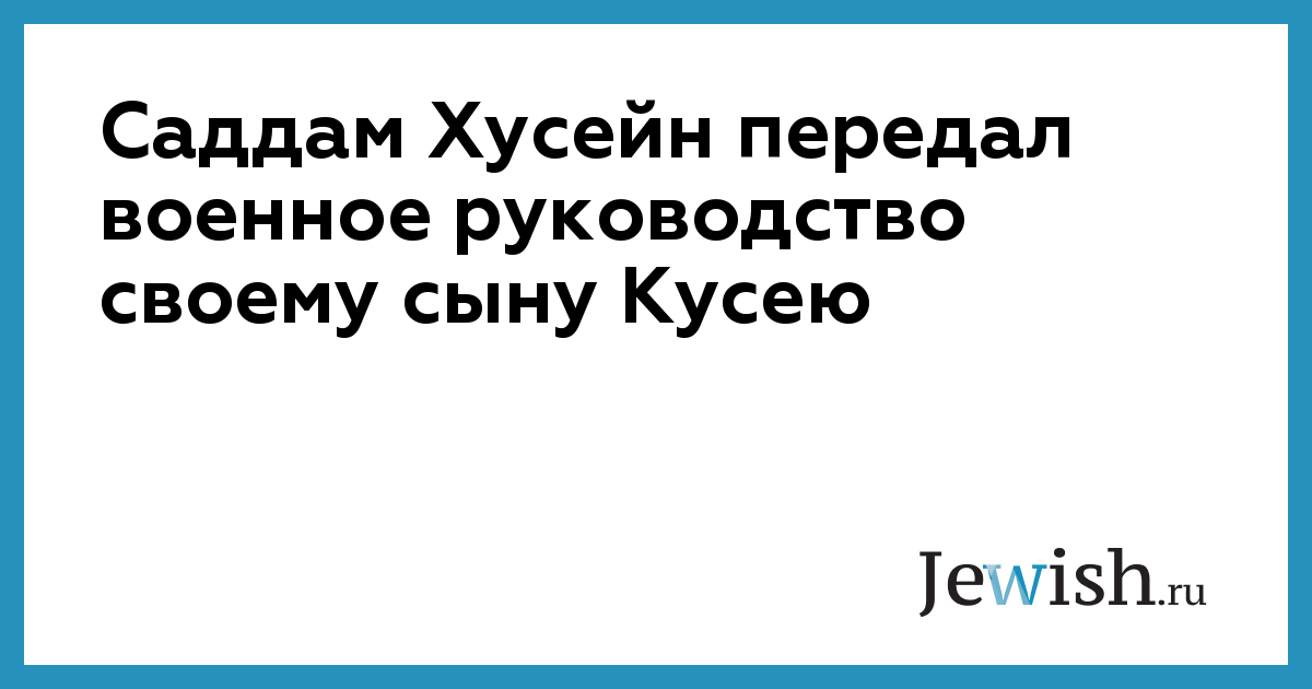 Саддам Хусейн передал военное руководство своему сыну Кусею