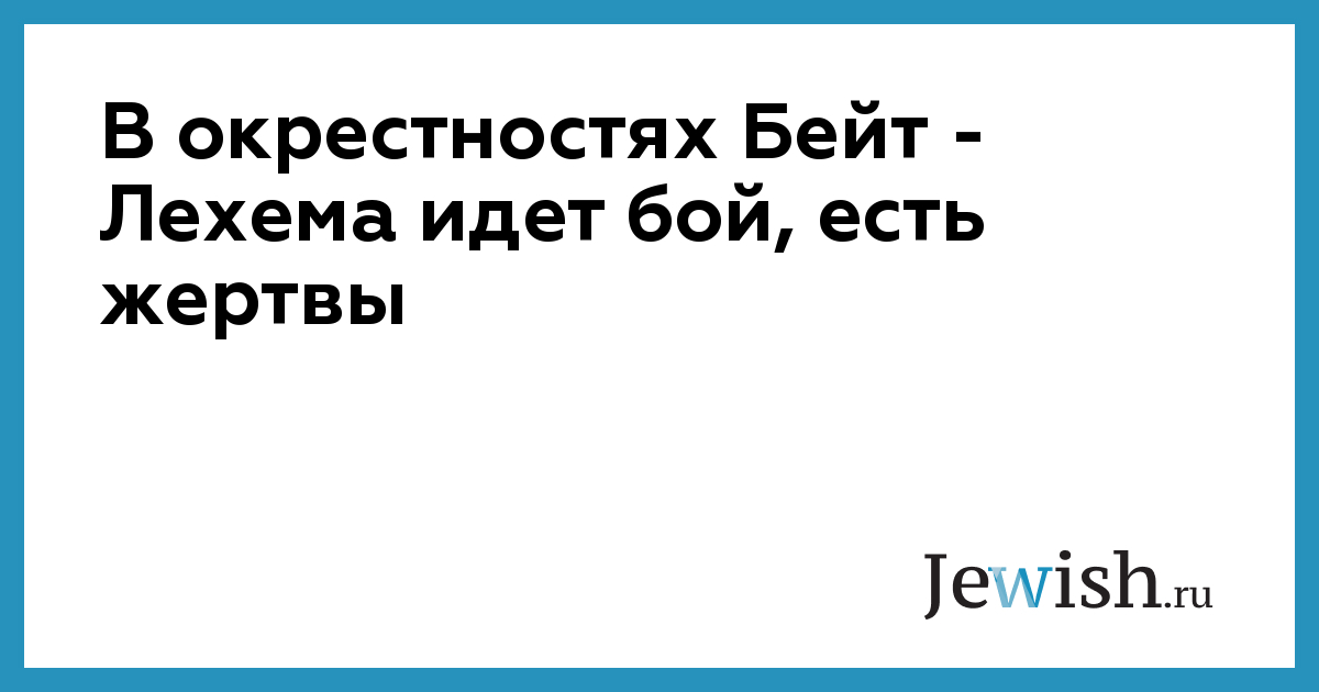 В окрестностях Бейт — Лехема идет бой, есть жертвы