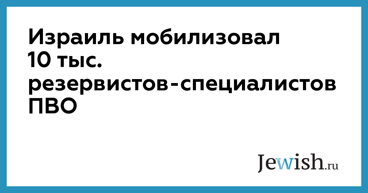 Израиль мобилизовал 10 тыс. резервистов-специалистов ПВО