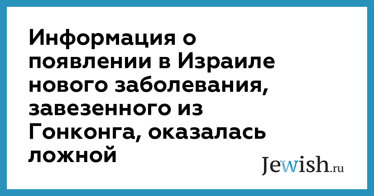 Информация о появлении в Израиле нового заболевания, завезенного из Гонконга, оказалась ложной