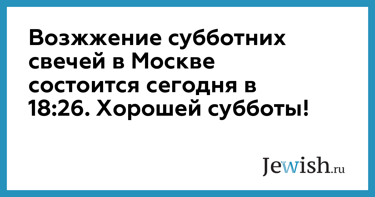 Возжжение субботних свечей в Москве состоится сегодня в 18:26. Хорошей субботы!