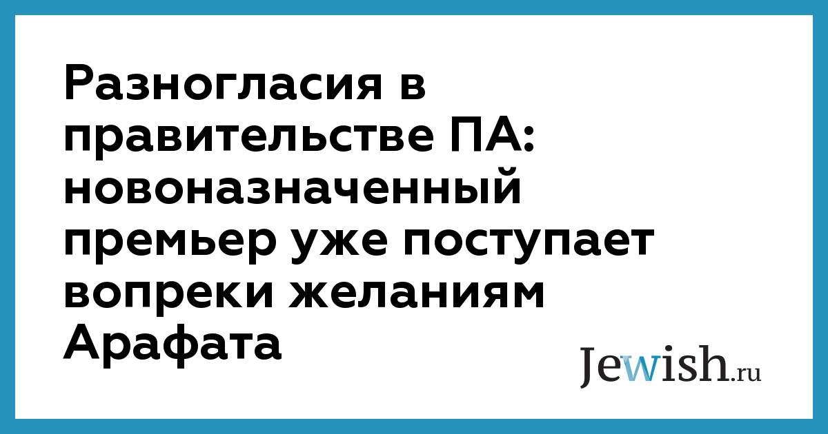 Разногласия в правительстве ПА: новоназначенный премьер уже поступает вопреки желаниям Арафата