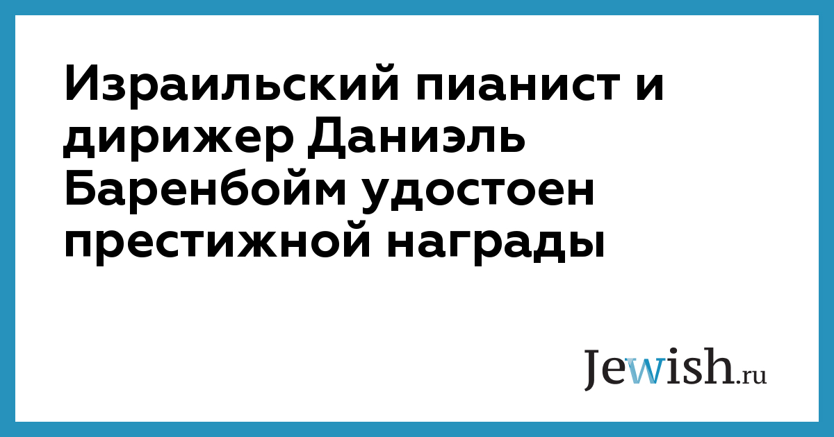 Израильский пианист и дирижер Даниэль Баренбойм удостоен престижной награды