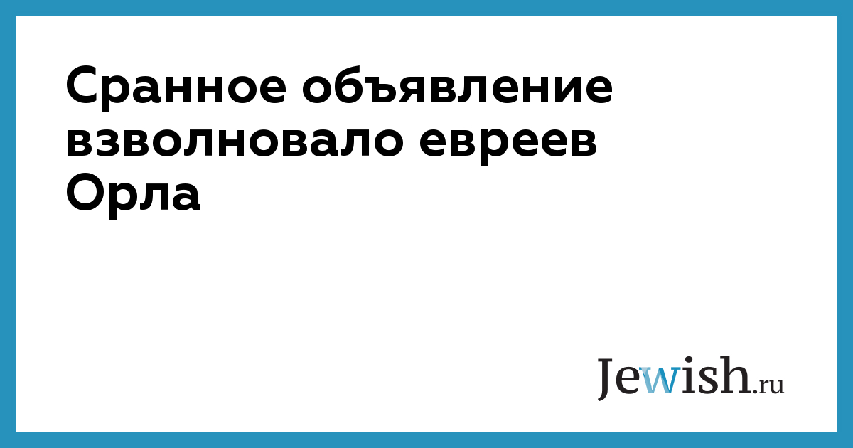 "Я не знаю, что это: глупость или провокация, — заявила Т. Пономарева, — но я опасаюсь, что это может быть пробным шаром, и за этим шагом могут последовать другие. В любом случае, подобные объявления оскорбляют наши религиозные и национальные чувства и подобные действия надо пресечь!" Еврейский общинно-благотворительный Центр "Нэшер" и еврейская религиозная община Орла обратились в прокуратуру Железнодорожного района Орла с просьбой принять меры для предотвращения подобных инцидентов. Об этом агентству "МК-Новости" сообщили в Институте общественных проблем "Единая Европа" (г. Орел) — передает NEWSru.com