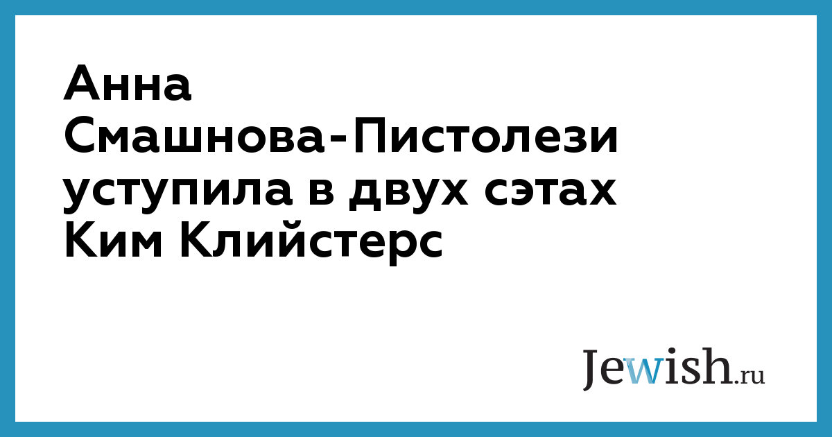Анна Смашнова-Пистолези уступила в двух сэтах Ким Клийстерс