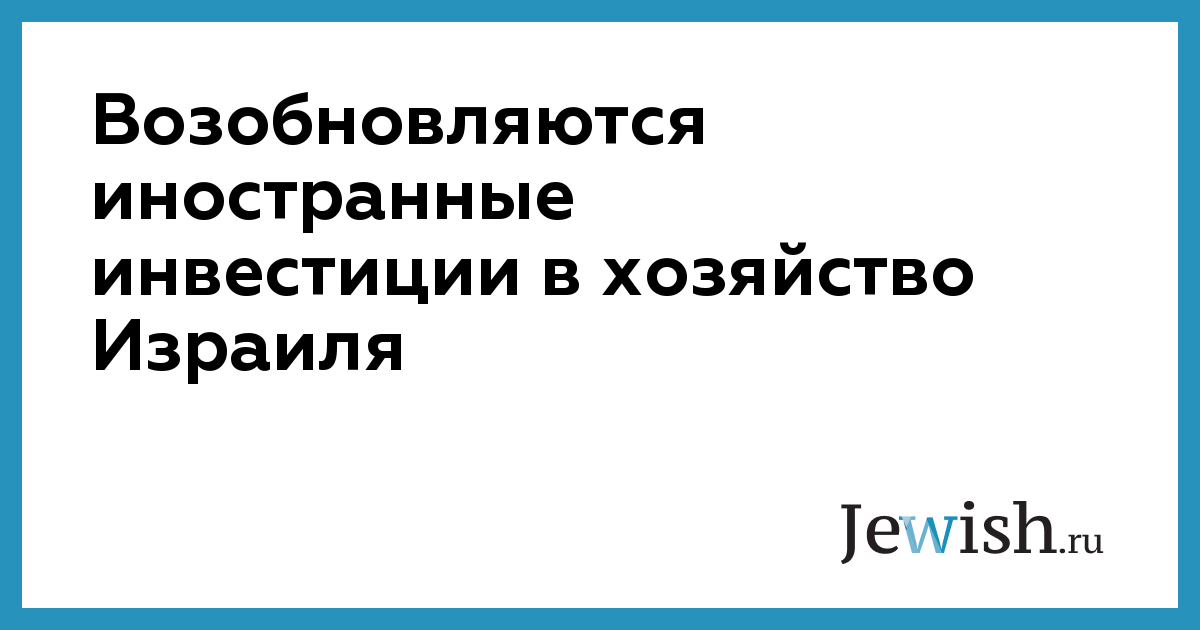 Возобновляются иностранные инвестиции в хозяйство Израиля