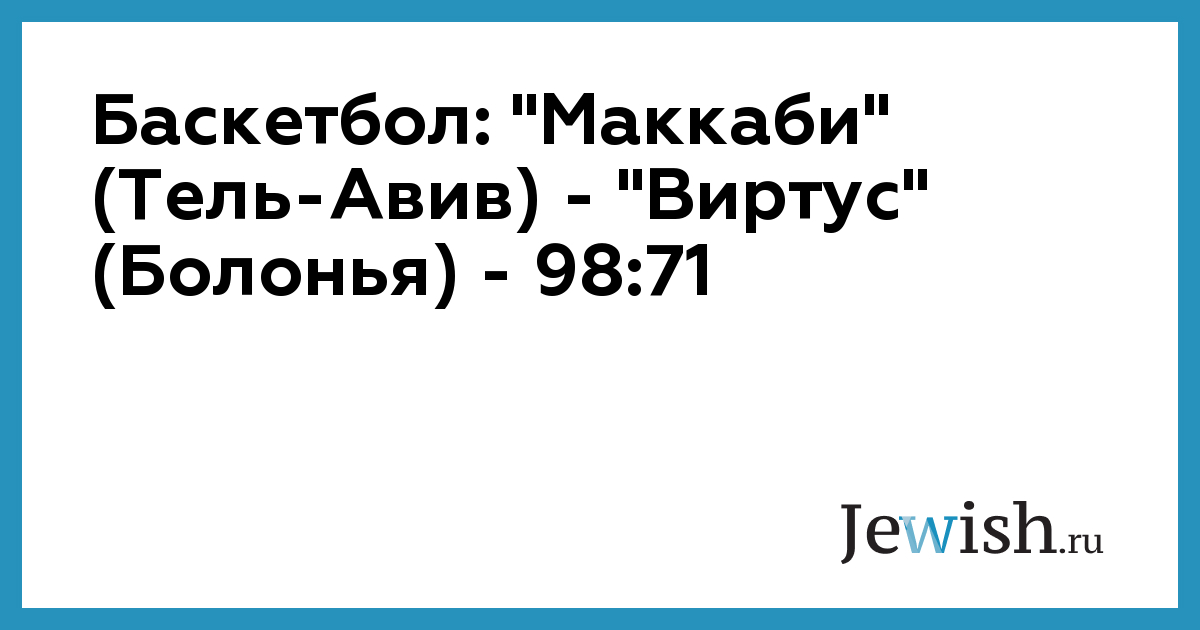 Баскетбол: "Маккаби" (Тель-Авив) — "Виртус" (Болонья) — 98:71