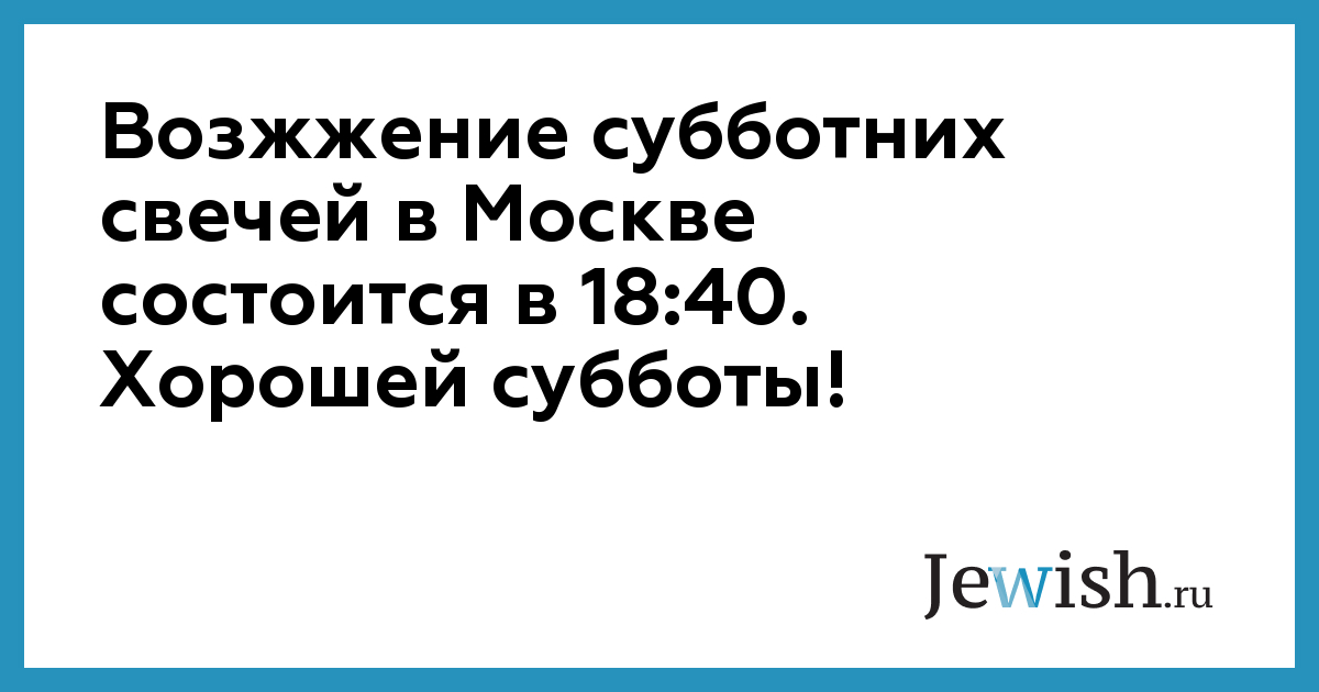 Возжжение субботних свечей в Москве состоится в 18:40. Хорошей субботы!