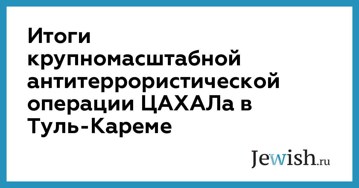 Итоги крупномасштабной антитеррористической операции ЦАХАЛа в Туль-Кареме