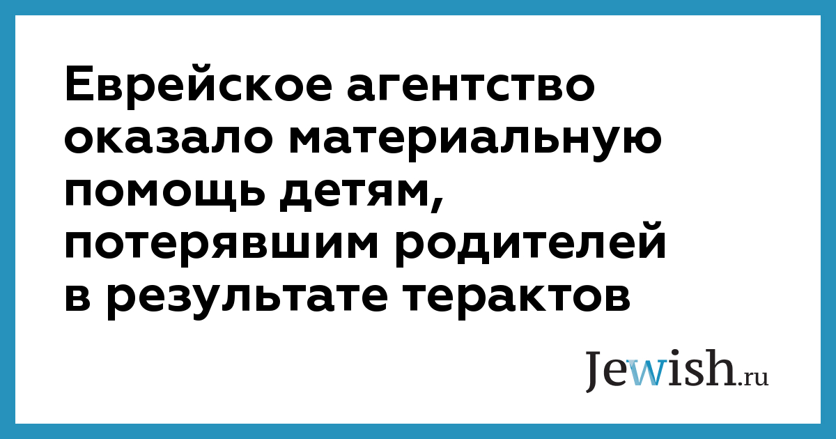 Еврейское агентство оказало материальную помощь детям, потерявшим родителей в результате терактов