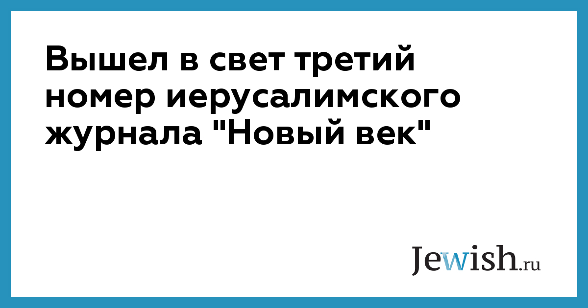 Вышел в свет третий номер иерусалимского журнала "Новый век"