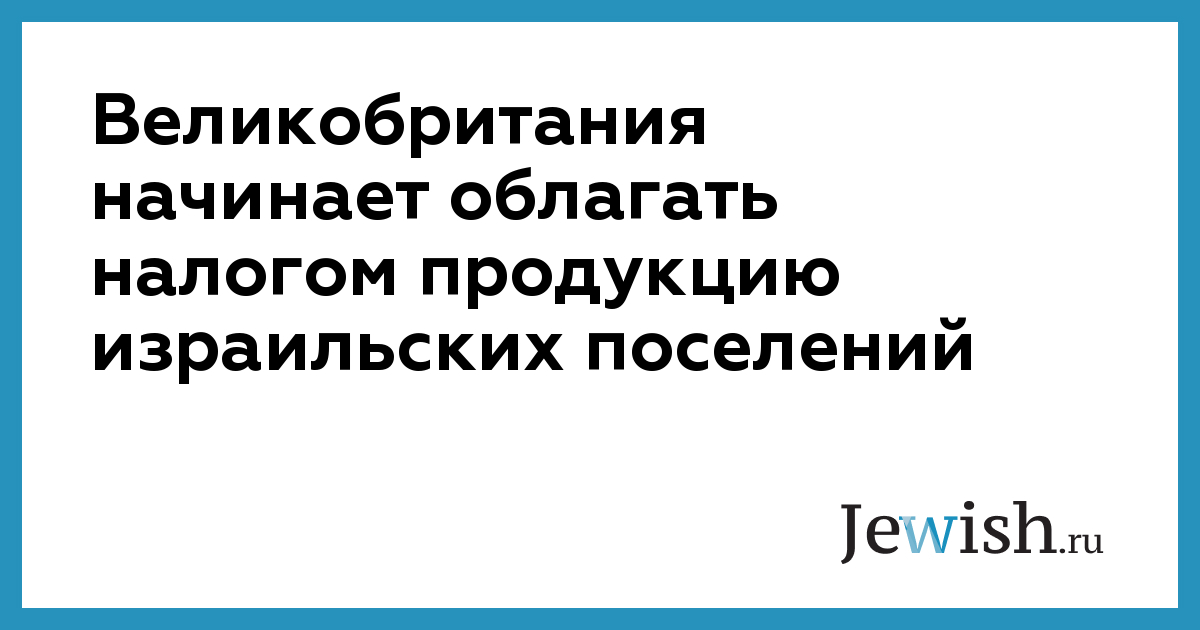 Британское руководство решило не дожидаться окончания ведущихся между Израилем и европейскими структурами разбирательств по достижению компромисса и начнёт взимать налог с поселенческой продукции — главным образом, продуктов сельского хозяйства. Товары из «внутреннего Израиля» останутся свободными от налогов.