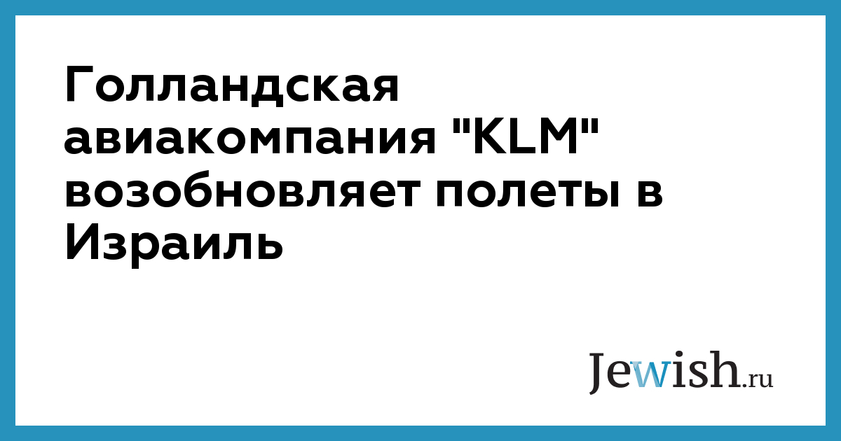 Голландская авиакомпания "KLM" возобновляет полеты в Израиль